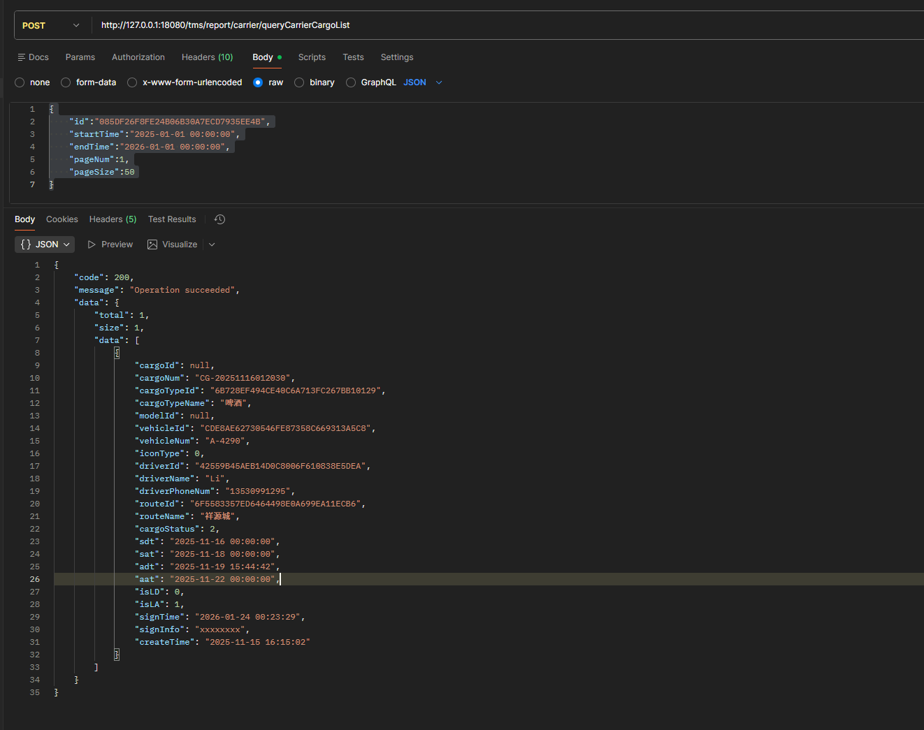 http://124.223.60.234:18080/tms/report/carrier/queryCarrierCargoList